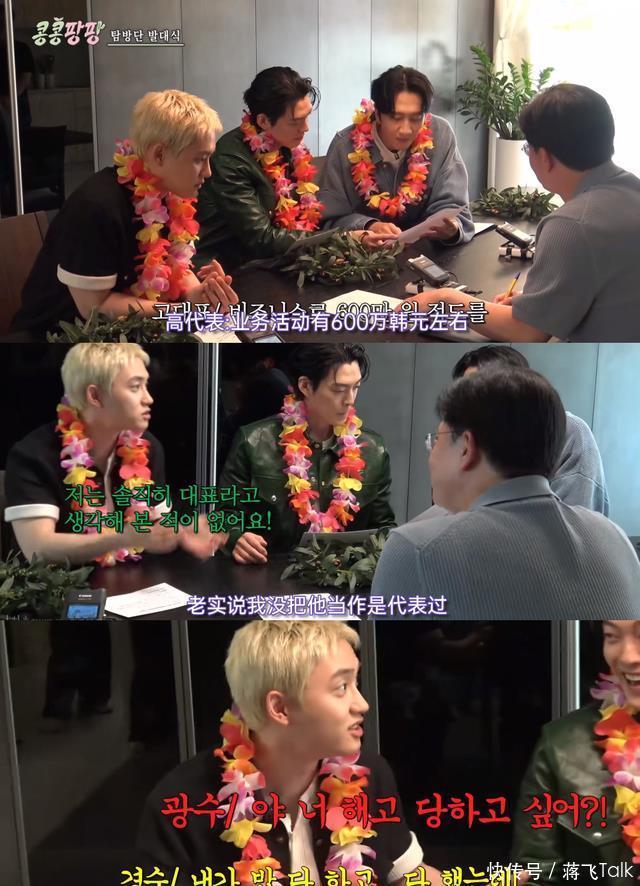 在新节目 《豆豆笑笑》 ,他们直接让 李光洙、金宇彬、都暻秀 三人挑选旅行地,自己预定机票和酒店并规划行程,甚至给他们的旅行经费也是参照蛋社领导层的出差标准。 因为李光洙挂着KKPP公司代表的头衔,差旅费比较高,还引发了D.O.的不满,说 活都是他干的,凭什么代表拿的钱最多,自己可从没把他当领导看。