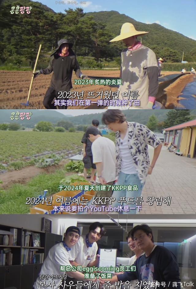 也就是说,这三人可不是纯出去旅行的,而是 要去探访海外文化,为下一季节目做准备 。 这里给小伙伴们科普一下,这个节目其实是 《种豆得豆》的衍生节目 ,这是罗PD和李光洙的首次合作,找来了李的好友们金宇彬、都暻秀、金基邦,结伴去乡下开垦小田。 后来因为《三时三餐》节目收获的土豆太多没法消耗,于是又把李光洙和D.O.秀二人叫到蛋社,试运营了三天员工食堂,做了200人的饭菜,同时制作了衍生节目 《豆豆饭饭》 。
